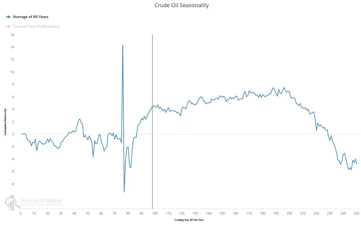 In the bullish camp however is seasonality, of which the summer months in the northern hemisphere have generally been supportive of higher oil consumption and thus higher prices.